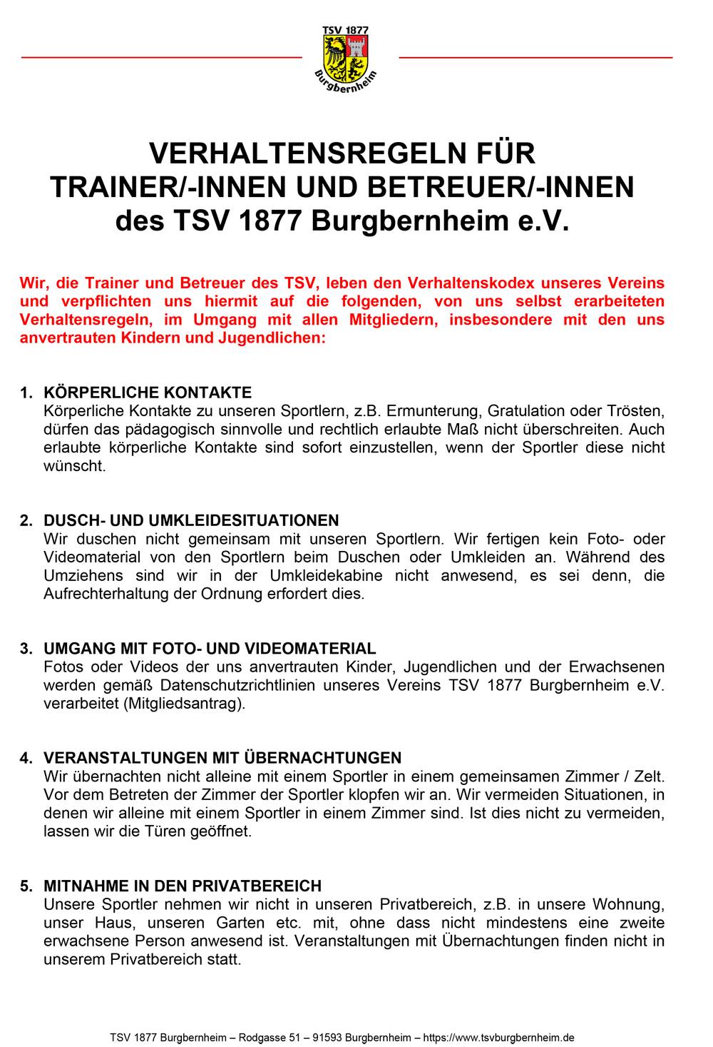 VERHALTENSREGELN FÜR TRAINER/-INNEN UND BETREUER/-INNEN des TSV 1877 Burgbernheim e.V. PDF-Datei